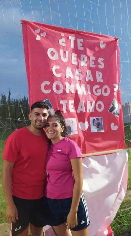 “¿Te querés casar conmigo? Te amo”, podía leerse en el estandarte. “Jugatela por amor”, el lema, en otro. El se arrodilló y como si fuera poco le regaló el anillo, en el pico máximo de emoción en una tarde que perdurá en el recuerdo de quienes presenciaron la hermosa propuesta, la mejor jugada. En especial en ese final en el que terminan diciéndose “cosas lindas” y en el que ingresan niños a rodearlos y abrazarlos. Todos los presentes aplaudiendo y felices...