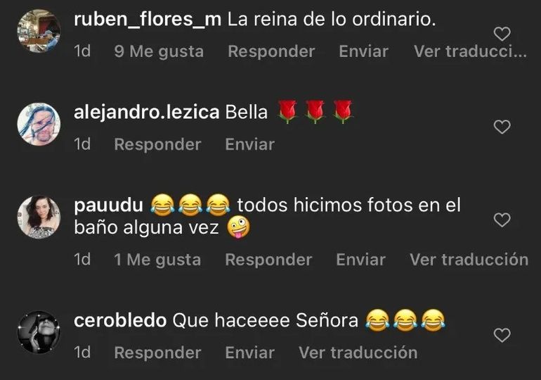 Sus seguidores, muchos de los cuales son “haters”, no tardaron en poner su cuota de maldad en la publicación y le escribieron de todo, menos que iban a comprar el producto ofrecido. “Primera en grasa”, “Estás vieja para hacerte la nena”, “¿Qué vas a hacer cuando la gravedad te castigue como a todos los mortales?” o “La reina de lo ordinario”, fueron algunos de los comentarios que la actriz recibió por sus postales en el baño de su lujosa casa.
