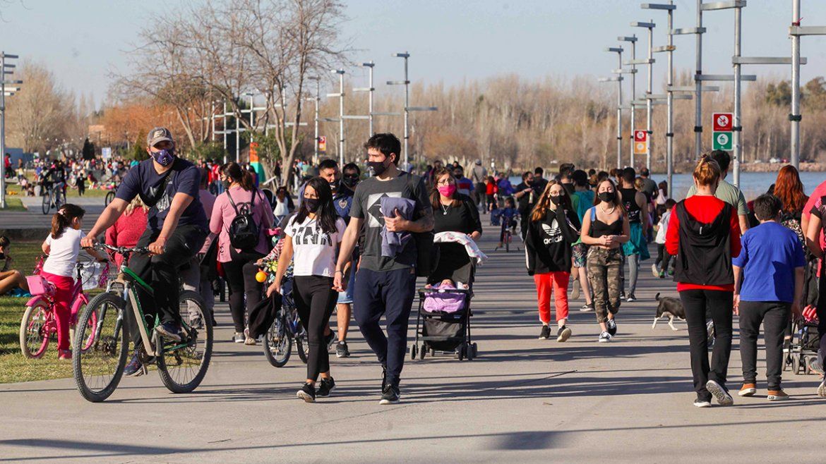 Si la aprobación fuera por cantidad, este domingo la ciudad de Neuquén hubiera promocionado el examen, ya que se observó varios puntos de la ciudad repletos de gente. Con el clima agradable que acompañó toda la jornada, los vecinos salieron a disfrutar la tarde en sus bicicletas, algunos en familia, otros en modo fitness y, los más irresponsables, sacaron sus reposera o mantas para tomar sol (actividad que no está permitida en las salidas recreativas).