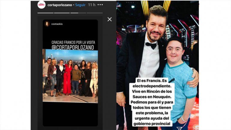 Horas después, Francis recibió el cálido saludo de Marcelo Tinelli, quien además de compartir en sus redes imágenes del emotivo momento que vivió junto al neuquino en Showmatch, aprovechó la ocasión para enviarle un mensaje al gobierno provincial.