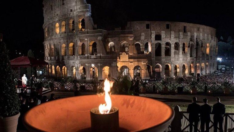 Bergoglio llegó al Coliseo apenas pasadas las 16 hora argentina (21 de Roma), donde fue recibido por la alcaldesa local Virginia Raggi y una multitud de más de 20.000 personas, informó el Vaticano.