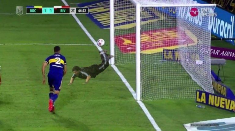 Se jugaban los últimos minutos del Superclásico en La Bombonera cuando una pelota en el área local superó a Andrada y se iba solita al arco pero increíblemente no entró.