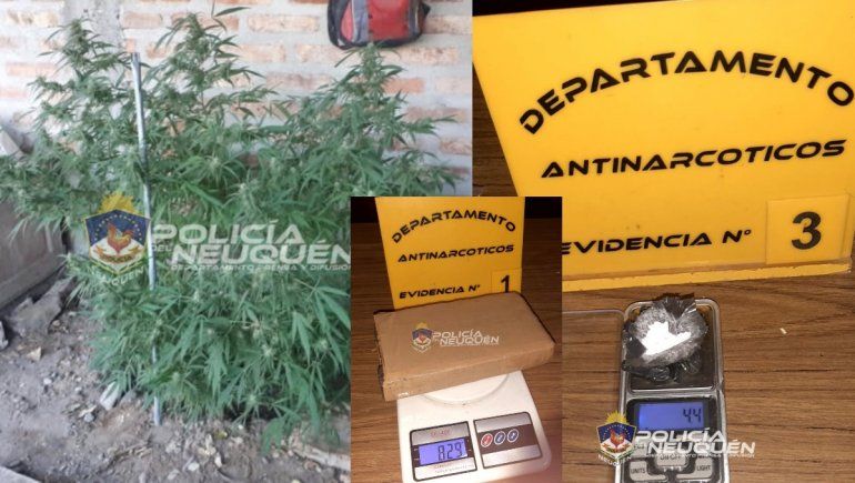 En la primera, ubicada sobre calle Policemio Castillo, personal de Antinarcóticos constató la presencia de un ladrillo de cocaína de 829 gramos, 11 envoltorios de la misma sustancia que arrojaron un peso total de 4,4 gramos y varias plantas de marihuana en proceso de secado.