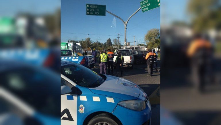 Dos camionetas protagonizaron un fuerte choque en Ruta 22 sobre la rotonda de acceso a Plottier. Dos personas mayores de edad fueron trasladadas de manera preventiva con heridas menores. Intervino personal de la División Tránsito, Defensa Civil y del hospital de Plottier.