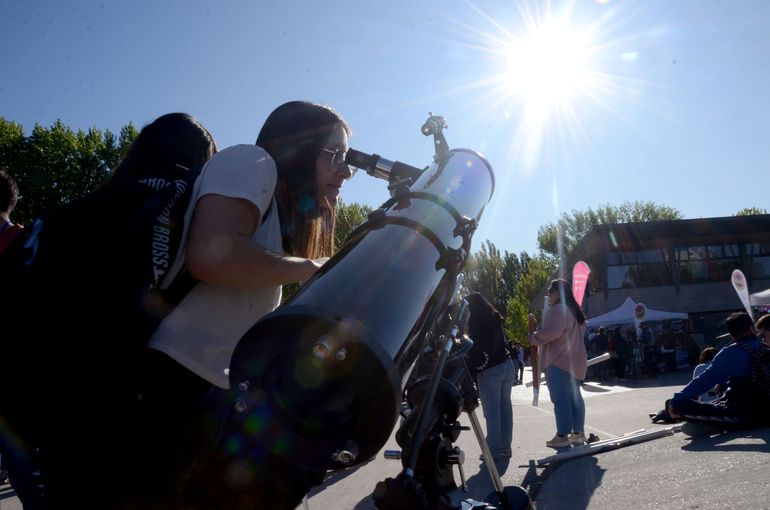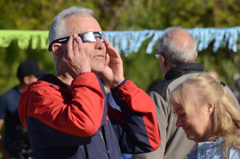 Mientras tanto, Valeria Guillibran hacía fila para ver uno de los telescopios, junto a su marido y sus dos pequeños hijos de 3 y 5 años. Ellos son oriundos de esta ciudad, y contaban con la visita de los abuelos, de Plaza Huincul. Así, en familia, disfrutaron mucho de la experiencia. "Re linda la organización y difusión del evento. Está muy bueno... es una forma de conectar con la naturaleza, más allá del interés general que despierta el eclipse", expresó Valeria.