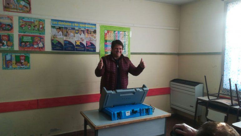 Acompañado por su madre, su hijo Mateo, su hermano y el gobernador Omar Gutiérrez, Mariano Gaido fue el primero de los candidatos a intendente que emitió su voto. Pasadas las 8.45, llegó a las escuela 67, saludó a los presentes y emitió su sufragio.