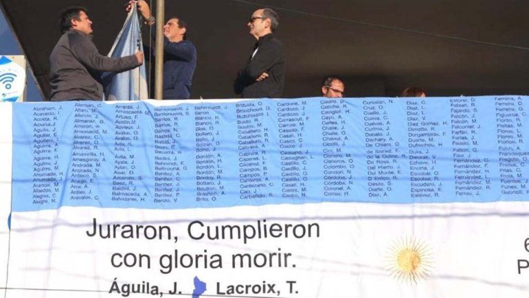 Acerca de la bandera que flamea en el edificio municipal, la secretaria de Ciudadanía, Luciana De Giovanetti, contó que “el sol y los nombres de los caídos en la guerra están bordados a mano. Estamos muy agradecidos con Ester Monje, que nos la prestó. Es esposa de Mario Flores, tripulante del crucero Belgrano hundido por los ingleses fuera de la zona de exclusión hace 38 años”.
