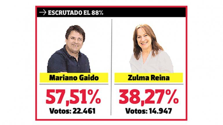 Con el 88 por ciento de las mesas escrutadas, al cierre de esta edición, el referente de la lista Azul obtenía 22.461 sufragios (57,51%) contra 14.947 (38,27%) de la ex ministra de Gobierno, Educación y Justicia.