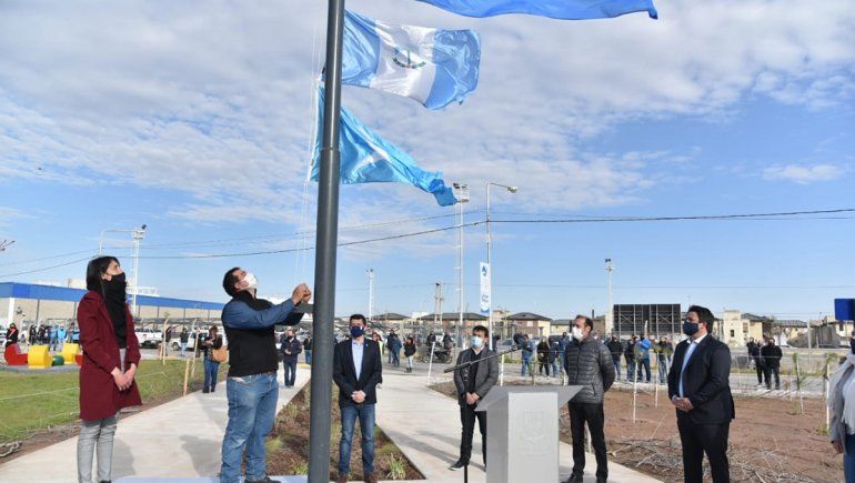 Ante cienteos de vecinos del barrio Unión de Mayo, Gaido y Gutiérrez hicieron una recorrida por las obras, entonaron el himno nacaional y cumplieron con el ritual del corte de cinta, que la da vida oficialmente a este nuevo espacio en el oeste neuquino.
