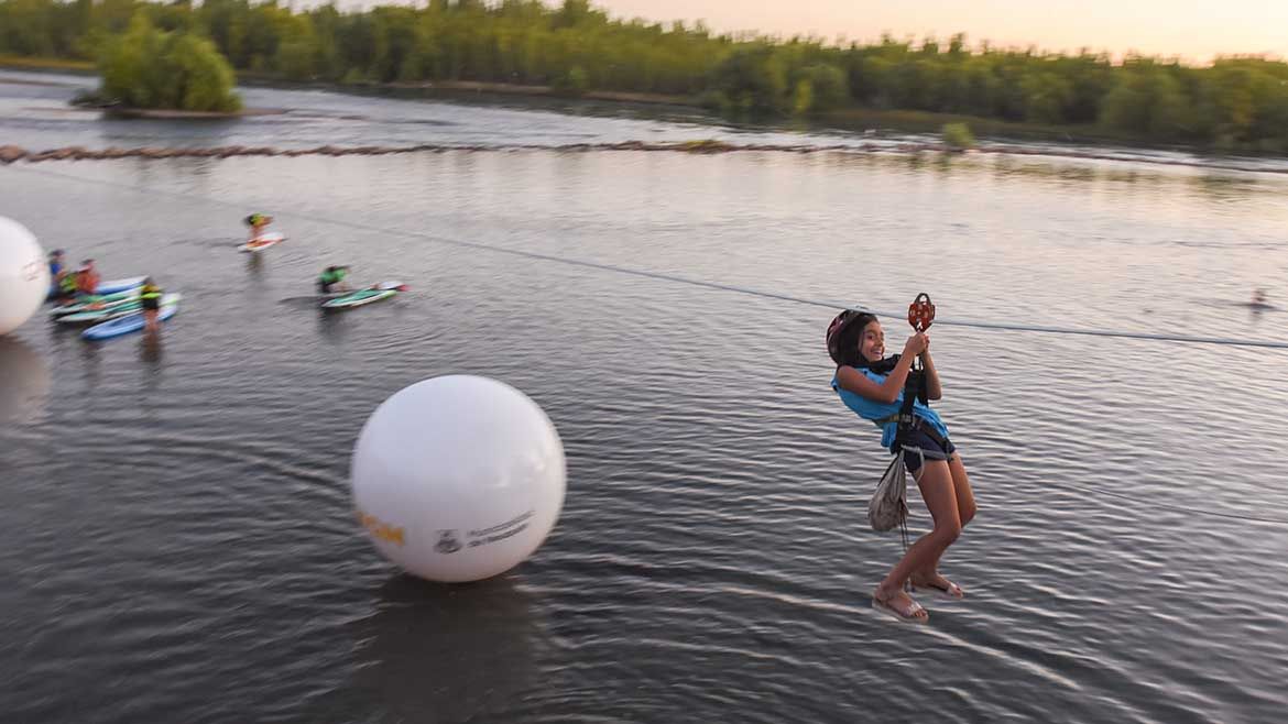 Paseo en las alturas: así se viaja en la plataforma en la Fiesta de la Confluencia