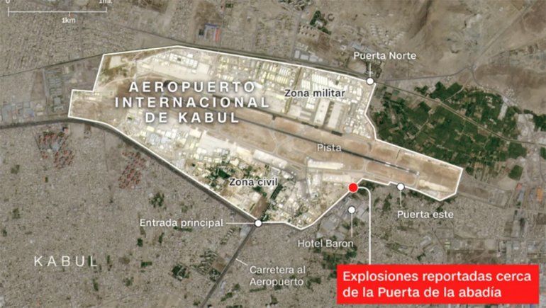 Dos suicidas con explosivos y hombres armados con fusiles atacaron a una multitud en la entrada de la terminal aérea de Kabul, donde en los últimos días se concentra la evacuación de los que quieren huir Afganistán, tras la toma del poder por los talibanes.