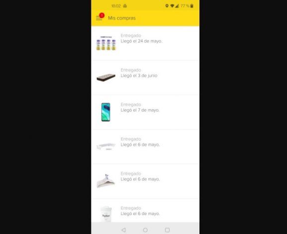 Yogures, un colchón, un teléfono celular, un perchero, perchas y alimento para perro sin los productos que figuran en las compras recientes de Marcos Galperin en Mercado Libre.