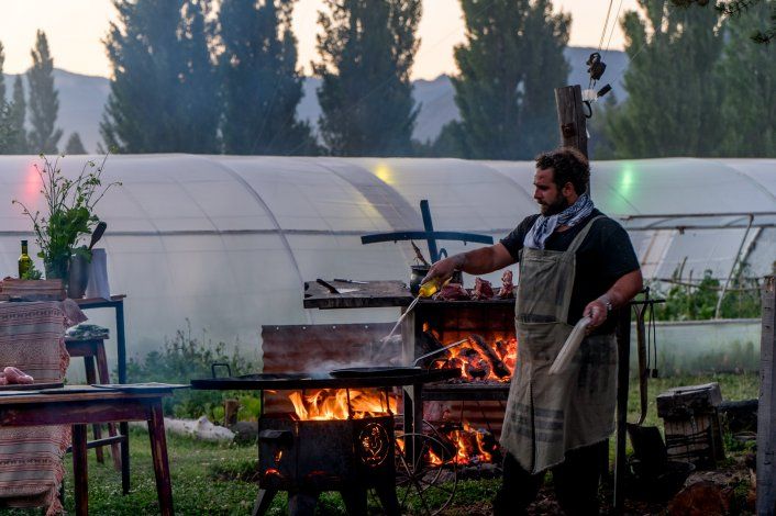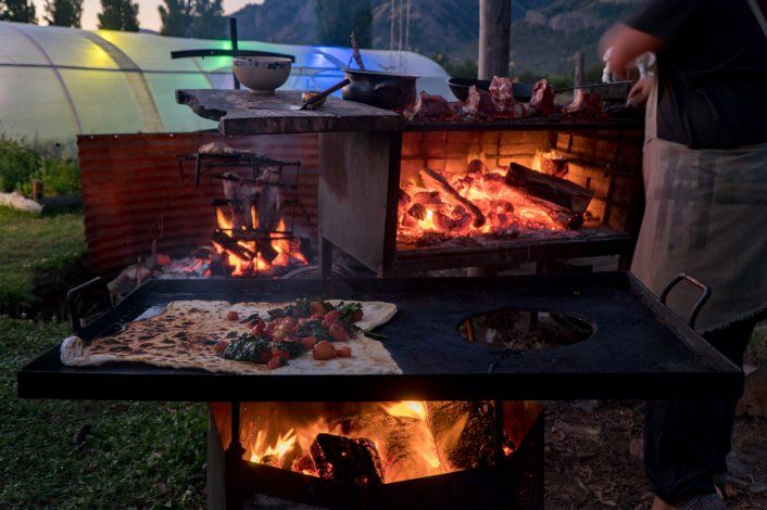 - Habrá horno de barro, planchas, productos de la huerta y de la zona. Vienen muchos amigos a cocinar, como por ejemplo la coordinadora del movimiento Slow Food en Argentina. En la propuesta vamos a trabajar con ternera de Filo Hua Hum que es un Lago hermoso que está a 15 kilómetros de Meliquina, vamos a meter un cuarto trasero de ternera en el horno de barro durante diez horas que irá entre panes con salsas, verduras de la huerta que en esta época son geniales. Haremos una fugazzeta rellena, doble masa, queso picante de San Martín, muzarella y aromáticas. Obviamente habrá opciones vegetarianas.