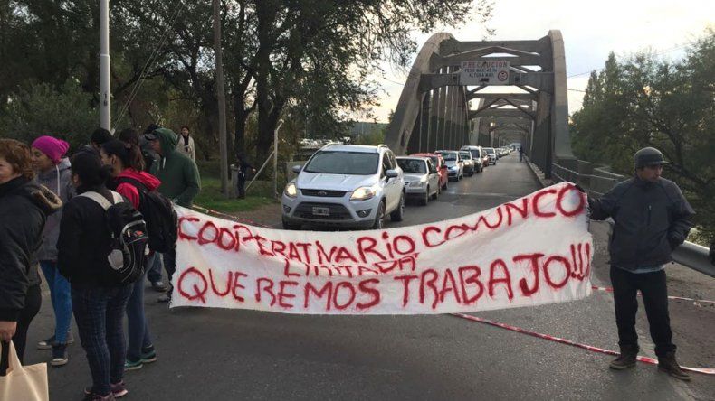 Cerca de las 9, un grupo de obreros de Río Covunco y Del Oeste llegaron a los puentes carreteros y mantuvieron un corte total en los caminos que unen Neuquén con Cipolletti.