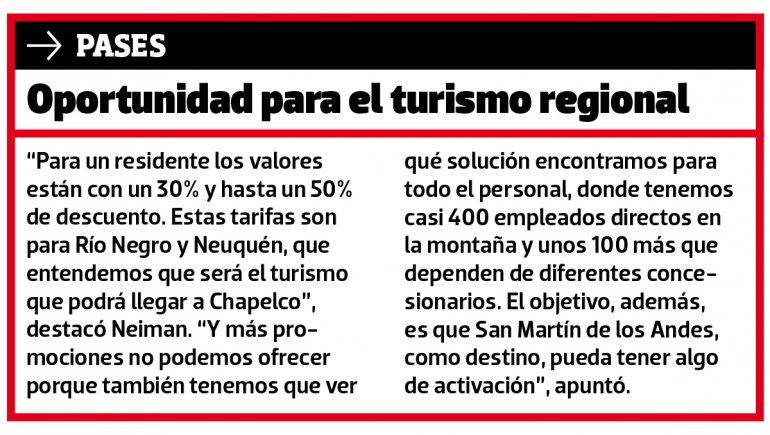 Hoy la temporada viene normal. Con la nieve que hay en la actualidad no podríamos abrir. Esperamos más nevadas y las condiciones entendemos que serán normales. En cuanto a la apertura, se podría pensar en algo local a partir del 15 de julio o en los primeros días de agosto. Y de ahí, según cómo avance la situación, ampliar las zonas desde donde se pudiera llegar a Chapelco. El primer paso es el turismo local, después con gente de Neuquén y Río Negro, y luego con provincias que tengan la misma situación que nosotros. Y ahí veremos. El espíritu es abrir con todos los medios en funcionamiento para que la pérdida no sea tan grande. Es una temporada que ya sabemos que dará negativo, pero apostamos a que un poco de movimiento es mejor que nada, a la espera de cómo evolucione la pandemia y las decisiones que tomen las autoridades.