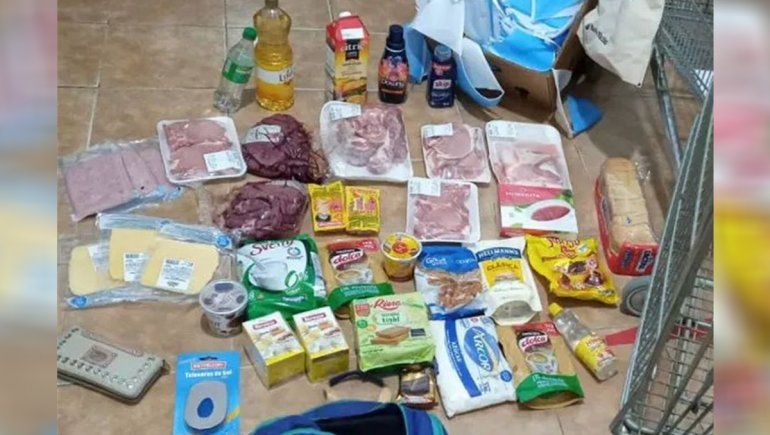 En ese sector fue detenido por la Patrulla Preventiva de Villa Nueva con una importante cantidad de mercadería, entre las que aparecían carne, jamón, queso, pan, dulce, aceite y otros víveres, junto a artículos de limpieza. En su mayoría, los productos eran de primeras marcas. Todo esto era transportado en un carro y había sido sacado de la sucursal sin haberlo pagado.