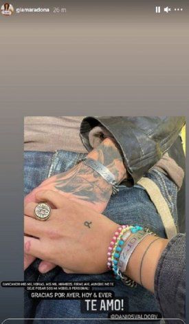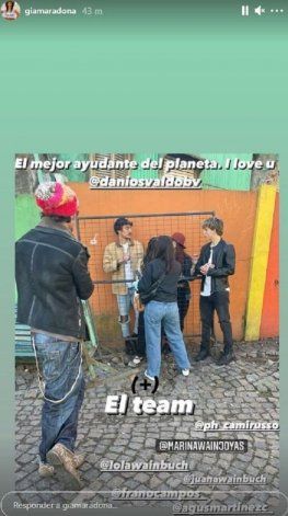 "El mejor ayudante del plantel I love you (Te amo)", escribió la hija de Claudia Villafañe y Diego Maradona en una historia de Instagram en la que se lo ve a Daniel Osvaldo de espaldas ayudándola con una producción de fotos para una marca de joyas.