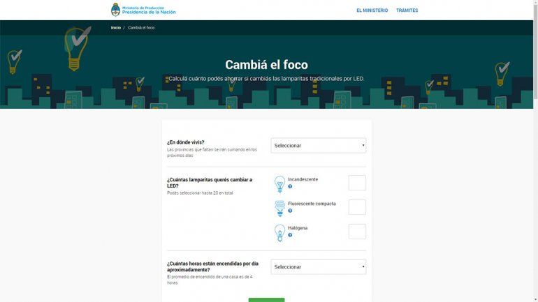 La campaña incluye también una calculadora online, disponible para que los ciudadanos puedan estimar el ahorro que produce el recambio de lámparas en sus hogares en el sitio web www.argentina.gob.ar/cambiaelfoco.