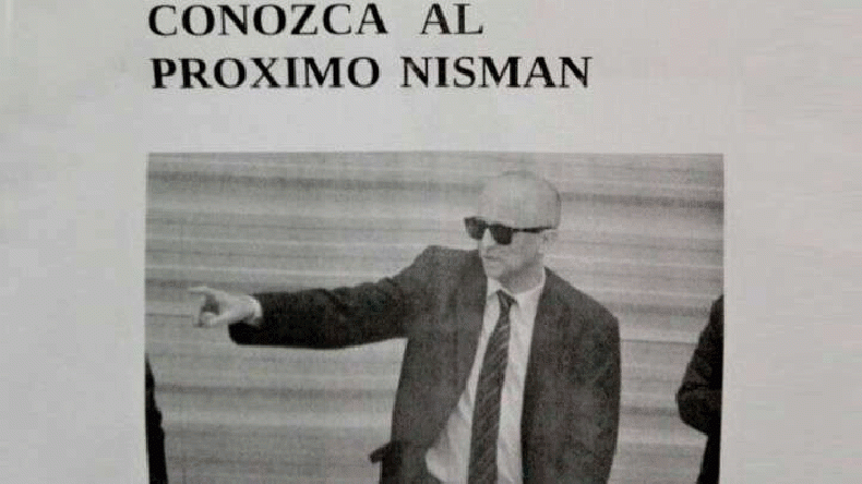 En los carteles se veía su imagen y la frase "Conozca al próximo Nisman", mientras que otras decían "Muerte de Nisman" y "Causa de los sobres: otro revés para los imputados".