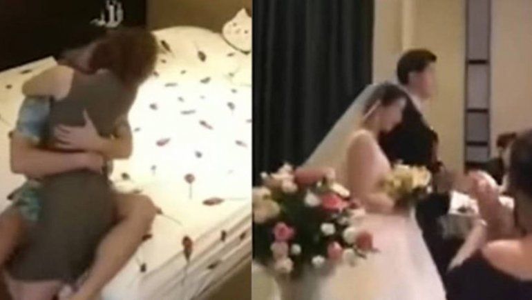 Lo increíble es cómo se logró la grabación. El novio había instalado cámaras de seguridad en la nueva casa que iba a compartir con su futura mujer, y ella, a pesar de que sabía de las cámaras, pero creyendo que estaban desconectadas, mantuvo relaciones sexuales en el cuarto matrimonial. Los invitados quedaron asombrados al ver las imágenes y empezaron los murmullos y hasta insultos entre los familiares de la pareja.