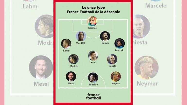 Lionel Messi fue el único argentino incluido dentro del mejor equipo de la última década que fue publicado este domingo por la revista "France Football", la misma que hace un par de semanas le entregó su sexto Balón de Oro.