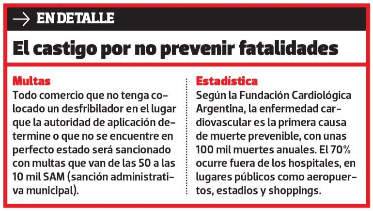 La terminal de colectivos, supermercados, La Visera, salas de conferencia o exposiciones para más de 500 personas, universidades, el casino y boliches con capacidad para más de 300 asistentes deberán contar con este dispositivo y capacitar al personal en técnicas de reanimación cardiopulmonar (RCP) y en el uso del DEA.