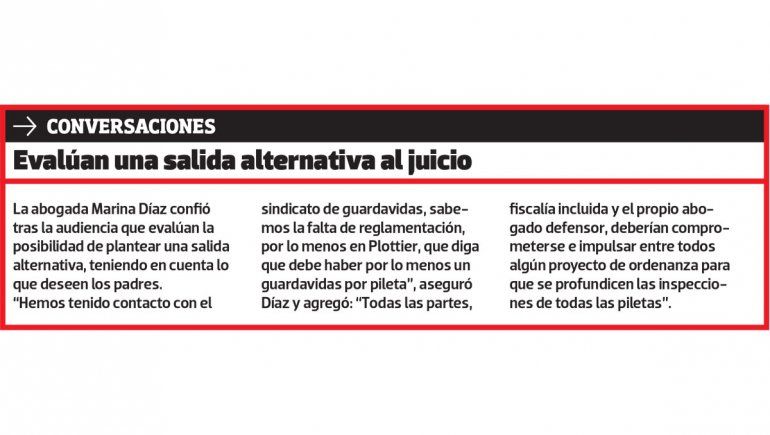 "Lo positivo es que se está investigando, pese a que ya casi se va a cumplir un año y que comienza nuevamente la temporada de piletas. Nosotros apuntamos a que la forma en que se manejan sea más profesional, hay vidas en riesgo y con esto se ha demostrado", confió Pablo, papá de la niña al finalizar la audiencia.