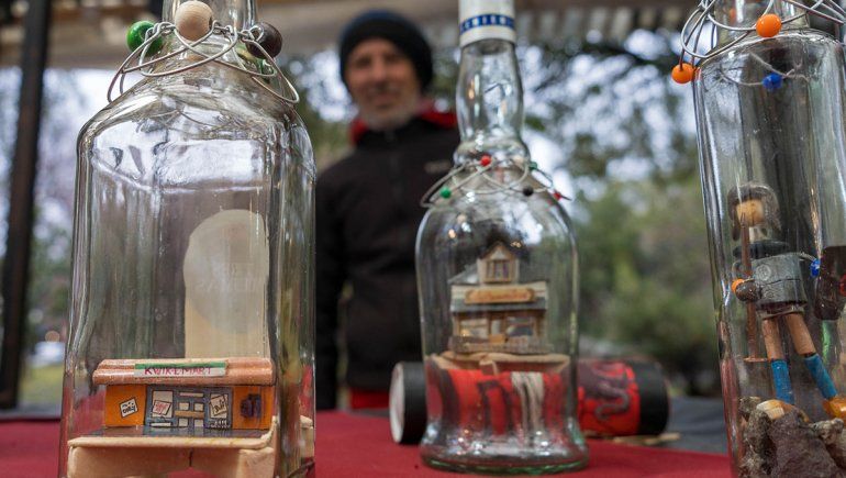 Parece un truco de magia indescifrable. Decenas de personas que se acercan al stand de Gustavo intenta develar y exponerlo. Buscan la trampa, observan la botella y piensan todas las alternativas posibles de cómo una réplica de la Municipalidad de San Martín de los Andes podría entrar. A simple vista, parece imposible y todos descartan lo obvio: ingresarlo por el pico de 1,5 centímetros de diámetro. “Es que lo que hoy falta es paciencia y sobra desconfianza”, aseguró, entre risas.