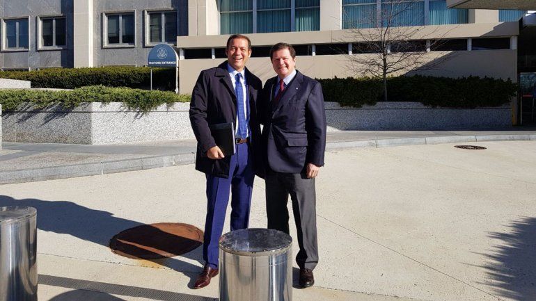 El gobernador Omar Gutiérrez inició esta mañana la gira de trabajo por los Estados Unidos, y junto a Fernando Oris de Roa, embajador argentino en el país del norte, participó en el encuentro de trabajo con el Bureau de Recursos Energéticos del Departamentos de Estado.