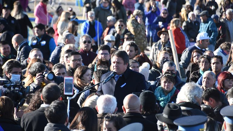 El gobernador Omar Gutiérrez se sumó al homenaje a los Veteranos y también al personal de salud que estuvo al frente de la pandemia de COVID desde el inicio, exponiéndose para salvar vidas e impulsando un plan de vacunación histórico desde el estadio Ruca Che, distante apenas unos metros del lugar elegido para realizar este acto.