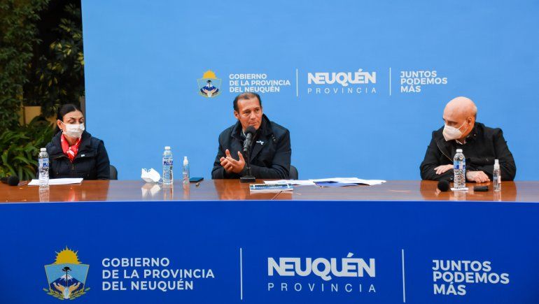 En el encuentro con la prensa en el que comunicaron las nuevas medidas que regirán por diez días, participaron, además del gobernador, el jefe de ministros Sebastián González, y los de Salud, de Culturales y Deportes, Andrea Peve, Marcelo Colonna y Luis Sánchez, respectivamente.