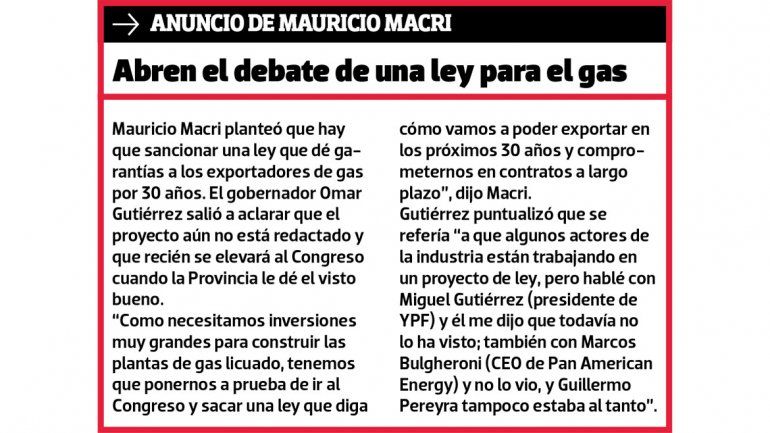 Gutiérrez planteó la necesidad urgente de explorar y conseguir nuevos mercados para la producción de gas de Vaca Muerta.