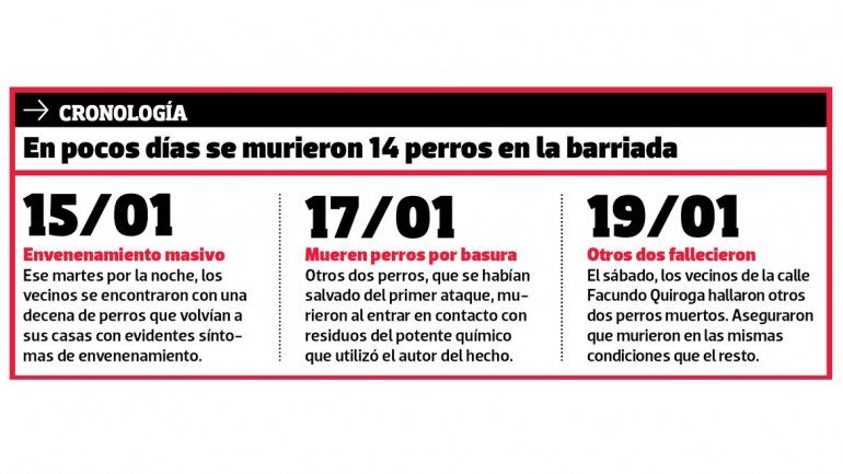 Por el momento, los vecinos están atentos a cualquier movimiento extraño en la cuadra, mientras que tomaron ciertos recaudos para evitar que sus mascotas se sumen a la lista de víctimas. “Nosotros no somos de tener a los perros afuera, pero igualmente estamos más atentos para que no se escapen cuando salimos”, comentó Paola, una vecina de esa barriada.