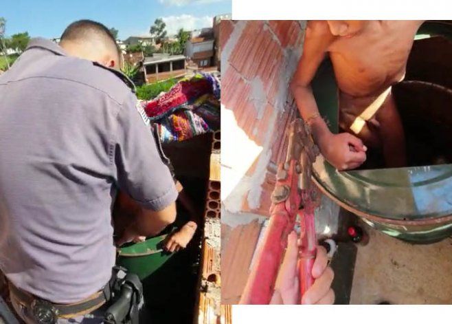 El terrible hecho ocurrió en Campinas, en el interior del estado de San Pablo. El sábado pasado, los efectivos acudieron al sitio tras una denuncia anónima de un vecino. Allí, se encontraron una desgarradora escena: hallaron al pequeño encadenado de pies y manos, atrapado dentro de un barril de pintura, que estaba cerrado con una pesada tapa de mármol, desnudo y desnutrido. Cuando el nene fue salvado, apenas podía moverse.