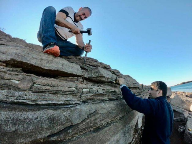 “Es una península que está llena de huellas y un análisis preliminar indicaría que es cien veces más a las que se registran en el balneario de Villa El Chocón”, comentó el paleontólogo Jorge Calvo.