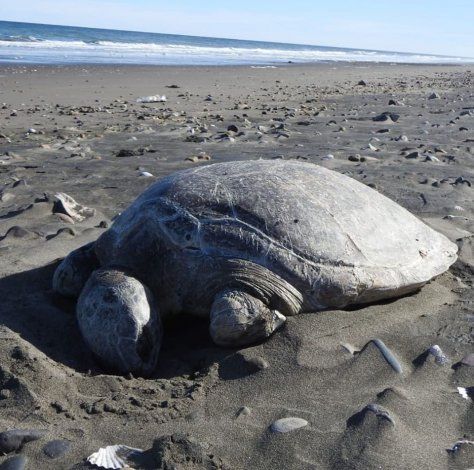 El 5 de agosto pasado, un pescador encontró lo que pensó que era un reptil muy grande en la costa del mar, sin signos vitales. Dio aviso de inmediato a las autoridades y se confirmó que se trata de un ejemplar de gran tamaño de la tortuga verde marina, de la especie Chelonia mydas, que está declarada como en peligro de extinción.