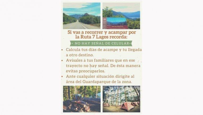 "Si están de viaje en zona de bosques o campings e incomunicados, es importante dar aviso a Guardaparques, en caso de que llegue información solicitando su paradero. De esa manera, si alguien pregunta, se da aviso que están bien, se ahorra la preocupación a un tercero y no se procede con la búsqueda", expresó el comisario.