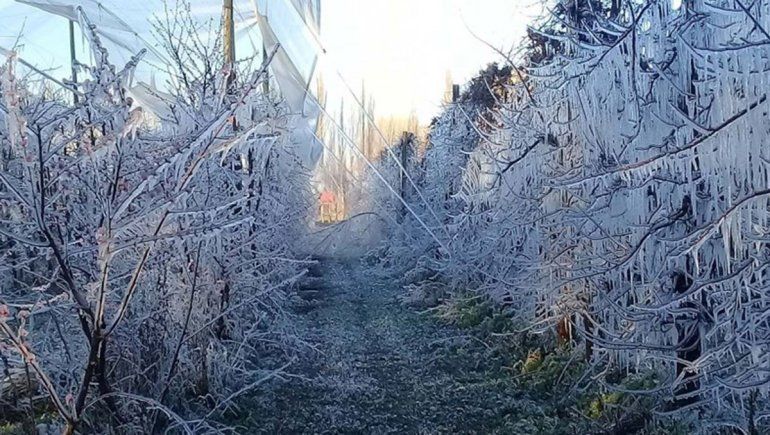 El riego por aspersión "va aportando calor a las plantas y combate el hielo que se formó", agregaron sobre la importancia del sistema, que no funcionó normalmente por la falta de energía eléctrica.