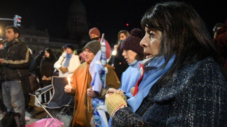 Fuera del edificio legislativo, y en una jornada fría, miles de personas con posturas a favor y en contra de la iniciativa siguieron el debate en las calles abrigadas con mantas y, en algunos casos, dispuestas alrededor de fogatas improvisadas en la Plaza del Congreso, situada frente al Parlamento.
