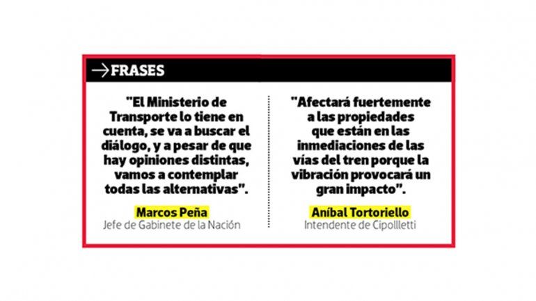 Pero el planteo de los intendentes a Nación por el tren se viene armando desde hace un tiempo, cuando se anunció la licitación el mes pasado. El 14 de julio, un grupo de 12 intendentes, desde el peronista Martín Soria hasta los afines al gobierno nacional como Tortoriello y el mismo Germán Epul de Cinco Saltos, se reunió en la Municipalidad de Cipolletti. En ese lugar redactaron la nota y la firmaron para que se contemple la modificación de la traza del tren para que no ingrese en todo el corredor de ciudades valletanas.