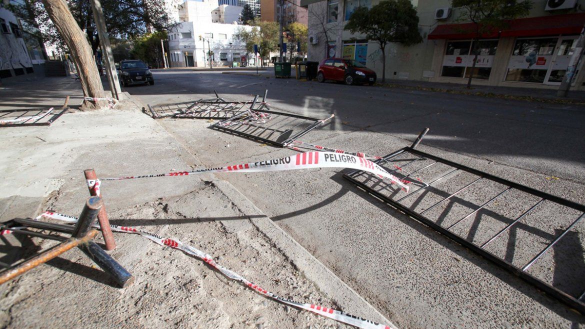 Los destrozos también se produjeron en un edificio frente al Municipio neuquino del que se cayó parte de la mamposteria que da a la calle. Afortunadamente, nadie circulaba por el lugar y la zona ya fue asegurada por personal municipal.