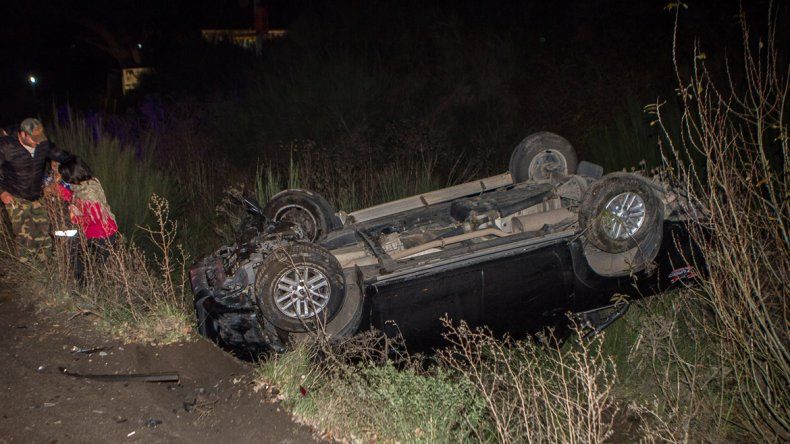 El impacto produjo que ambos vehículos salgan despedidos del camino y terminen uno a cada lado de la banquina. Además, la camioneta quedó volcada por el desnivel que tiene la ruta en ese sector.