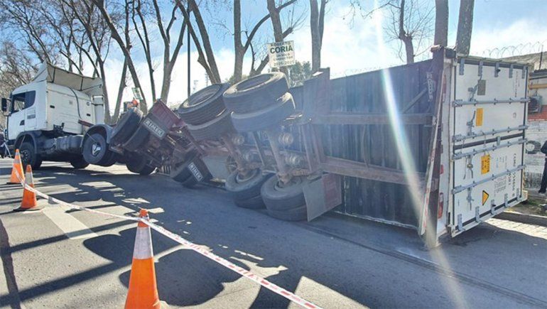 Personal de la Comisaría Vecinal 1 A de la Policía de la Ciudad fue desplazado a las 13.40 de este miércoles al cruce de las avenidas Castillo y Comodoro Py luego de haber sido reportado el vuelco de un camión luego de tomar una curva.