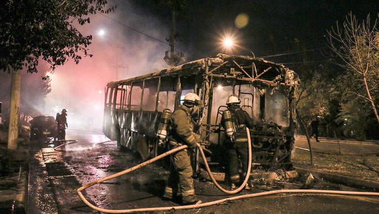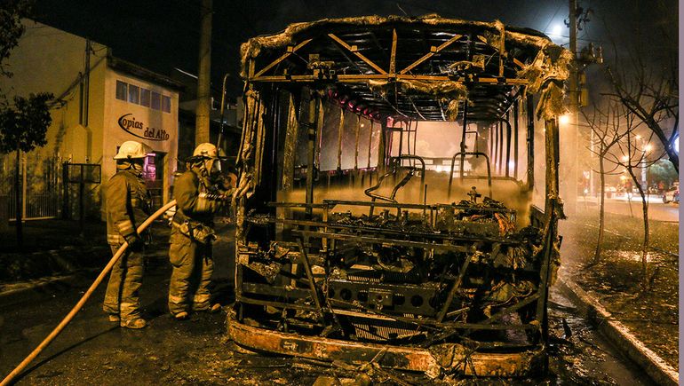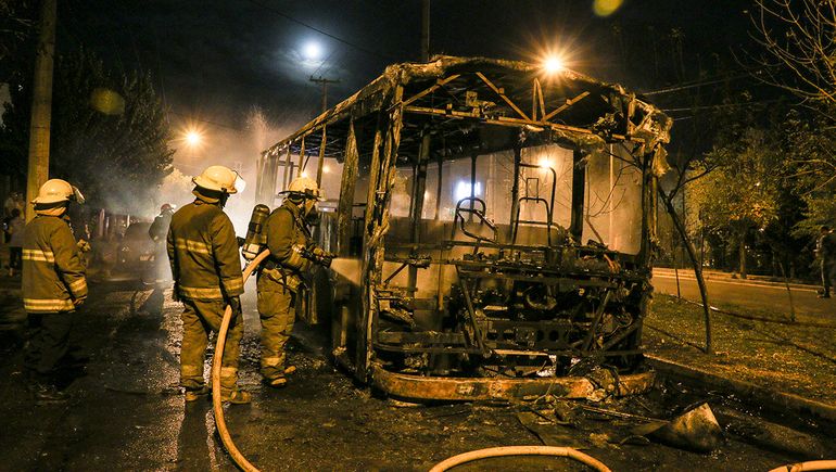 Tras varios minutos de arduo trabajo los Bomberos lograron apagar las llamas del colectivo perteneciente a la empresa Pehuenches que, quedó varado en la intersección de calle Los Pensamientos y El Ceibo en inmediaciones de una rotonda del barrio, a metros de la Comisaría cuarta.
