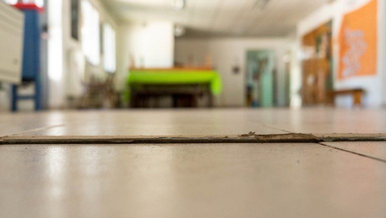 “No se sabe bien qué paso para que eso ocurriera. Estaban en un aula cuando empezó a quebrarse el piso y a saltar los cerámicos. Primero en un sentido y luego en otro. Después sucedió algo parecido en la cocina. También en el piso del SUM se hizo como un socavón”, relató el secretario general de ATEN de San Martín de los Andes, Matías Lavandeira, quien recorrió el establecimiento junto con la directora.