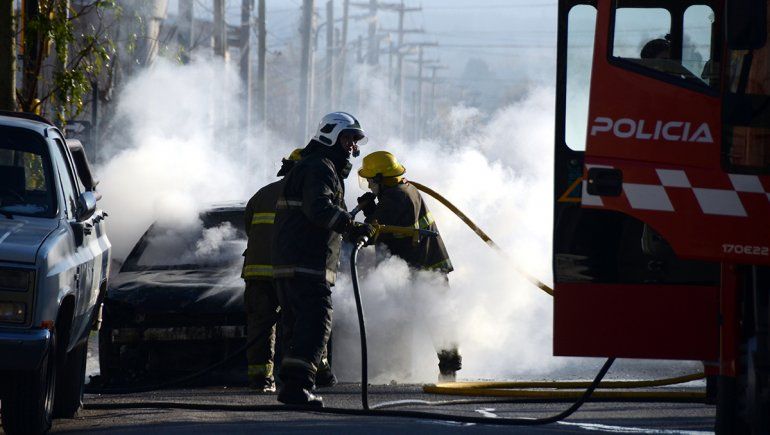 Un auto tuvo un desperfecto mecánico que terminó con un incendio y la llegada de los bomberos para extinguir las llamas, que consumieron casi la totalidad del vehículo.