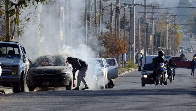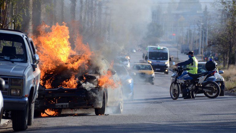 Fue a las 16.10 del domingo, cuando la policía recibió aviso de la situación. Un joven, que circulaba por Novella y Abrazo de Maipú, vio salir humo del auto que conducía, un Citroën C4 color negro. Al ver la situación, se bajó sin poder hacer más que dar aviso y ver las llamas crecer.