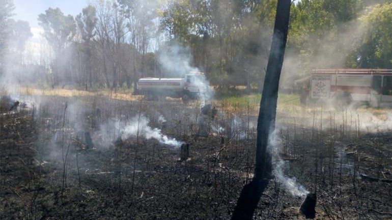 Durante la tarde, un segundo incendio se detectó en el Paseo de la Costa de Plottier donde las llamas ocasionaron importantes pérdidas arbustos y árboles del sector ribereño.