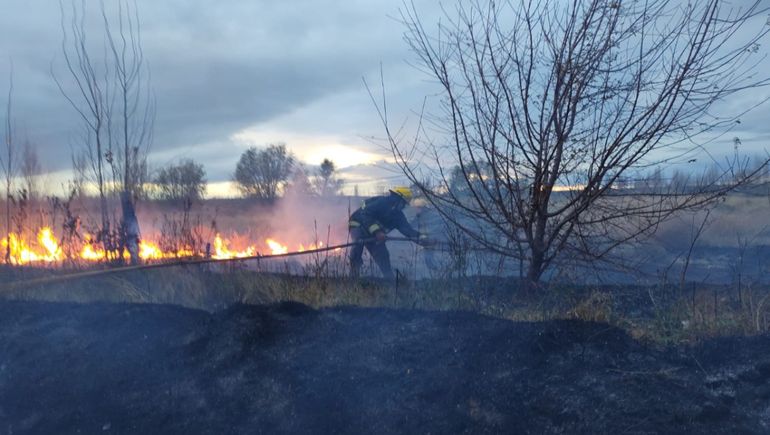 Un incendio se desató este domingo a la vera de la Ruta Nacional 22, en cercanía del Parque Acuático Patagonia Splash, y afectó a cuatro hectáreas. Las ráfagas de viento complicaron las tareas de las cinco dotaciones de Bomberos Voluntarios que trabajan en el lugar.