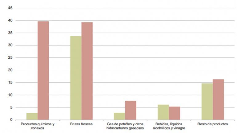 Dicho escrito explica que la provincia exportó 108 millones de dólares en el transcurso del año anterior; debido principalmente a las ventas externas de productos químicos orgánicos; frutas frescas –mayoritariamente peras y manzanas–; y gas de petróleo.